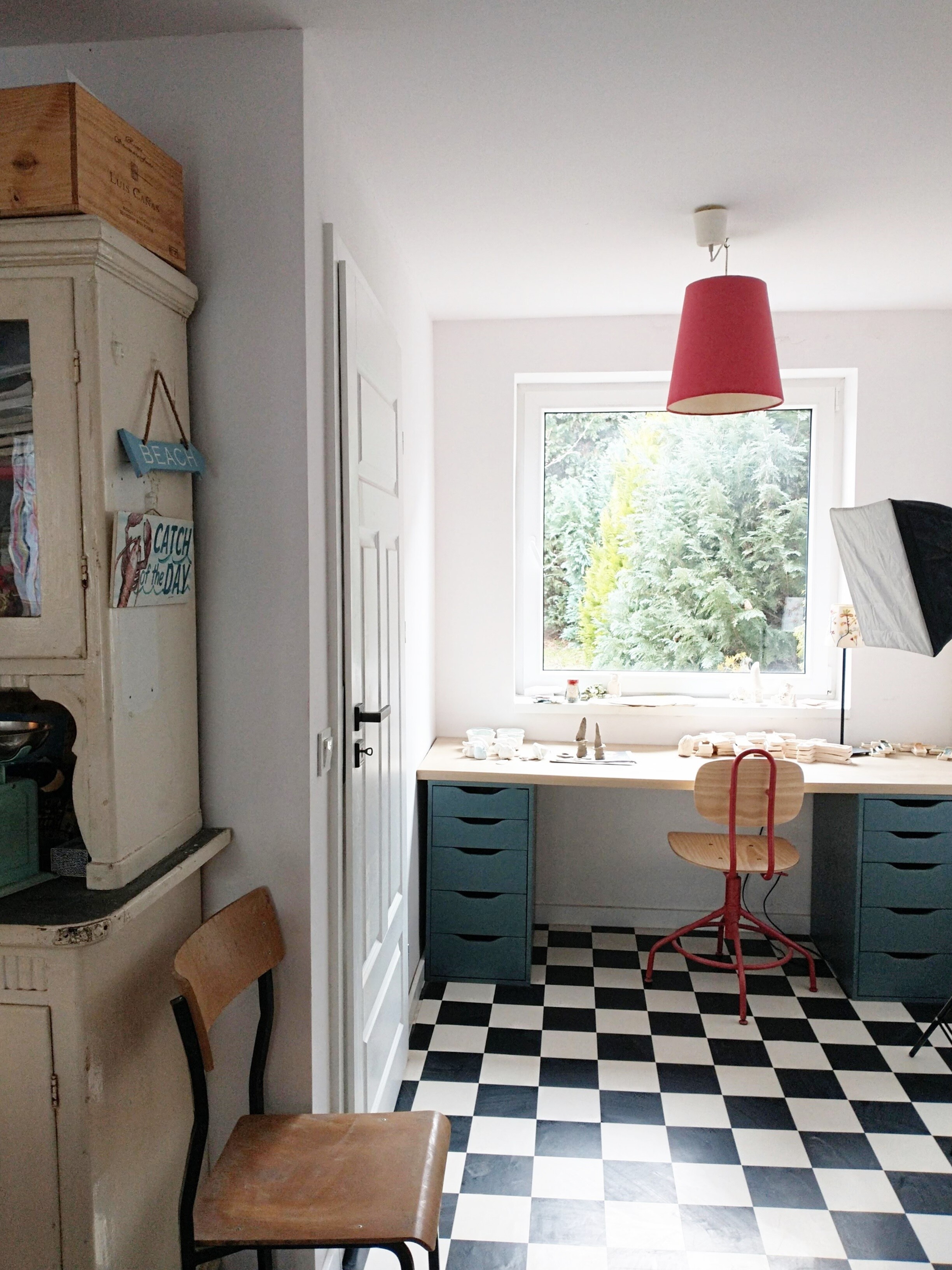Z budynku gospodarczego, typowego dla zabudowy lat '70, powstała moja pracownia. Uwielbiam w niej przebywać, tworzyć w samotności słuchając muzyki lub podkastów o świecie, lub prowadząc warsztaty.